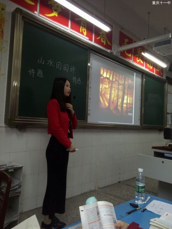 张盈老师代表语文组参加了这次展示课,她的课集中体现了“先学后导、问题主线、学导结合”的新式教育理念。在美丽的笑容与流畅清新的语言中,她带领大家走进了山水田园诗歌的神秘世界,领悟了一番“山光水色养性灵,登山观海总溢情”的别样人生。