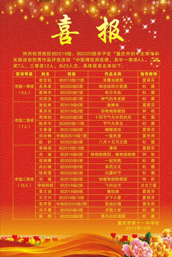 热烈祝贺我校初2019级、初2020级学子在重庆市初中生物学科实践活动优秀作品评选活动中取得优异成绩