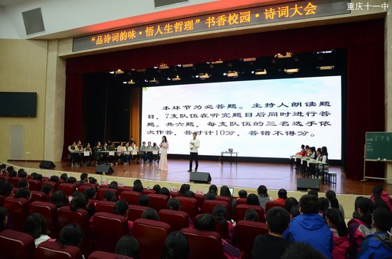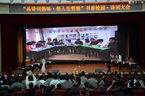 11月16日晚,重庆市第十一中学校高二年级语文组在文益堂为全年级师生举办了主题为“品诗词韵味 悟人生哲理”书香校园·诗词大赛。
