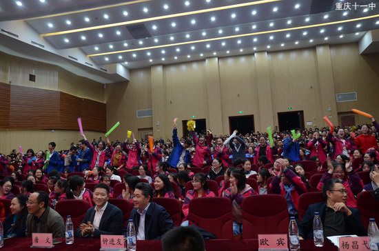 重庆市第十一中钟进友校长、李顺林副校长、谢晓斌副校长、欧宾副校长、工会杨喻虹主席、行政办谭远松主任、教务处毛阿英副主任莅临指导。