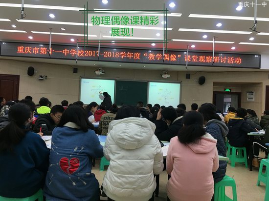 以问题为主线,以问题为主导,充分体现先学后导,以学定教的教学盛宴!2017年11月23日上午,重庆市第十一中学校2017--2018学年度“教学偶像”教学观察研讨活动之物理组,在多媒体二教室精彩呈现!金华老师的多以启发性,创造性问题为主的新课教学,为降低新知识的难度,变抽象为具体,每个新知识前都有对应的演示实验,让学生再次认识物理的神奇。吕清泉老师多以记忆性问题为主进行专题教学,在记忆中加以提高,尤其是一题多变,会一道题从而会一类题!刘宇老师的实验课多以记忆性和启发性问题为主,学生参与度极高……