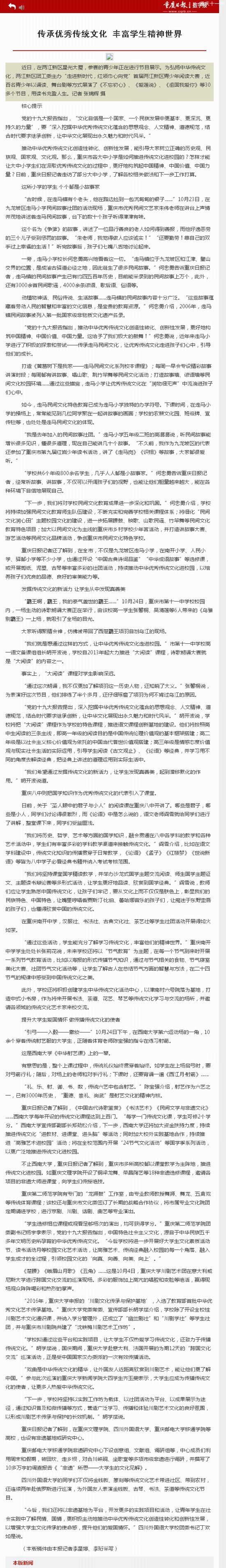 [重庆日报数字报]传承优秀传统文化,丰富学生精神世界