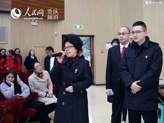 “假如我在小区里被高空坠物砸到了,应该怎样维权呢?”、“法官叔叔终于把我心中的宪法解答了。”日前,在重庆市第十一中学的文益堂里,热闹不已、气氛热烈。“合理维权”、“法制建设”、“高空抛物”、“手机入校”……师生们“脑洞大开”,提出了一个又一个法制问题,都得到了南岸区“周俐莎法制工作室”法官以及法律志愿者团队耐心解答。