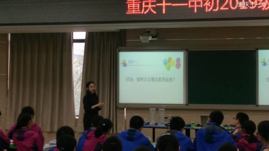 “谁能让水中的橡皮泥浮起来呢?”3月29日上午第四节课,我校修德楼四楼多媒体教室,物理陈怡老师正在给一群求知若渴的学子们讲授“阿基米德原理。”