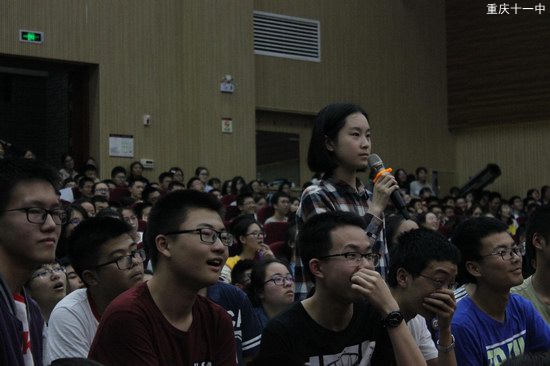 此外,整台晚会还穿插了精彩的英语猜谜游戏和英语趣配音两项互动。台下的同学们积极参与,你争我抢,乐在其中。活动进入尾声,全年级学生用中英文齐声唱诵《登鹳雀楼》。朗朗上口的歌词,激愤人心的曲调,不仅展现了十一学子更上一层楼的决心,更寓意中华文化更好地走向世界。