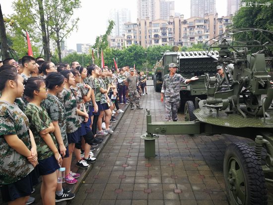 如果说“战伤救护”学习承载着女生们成为白衣天使救死扶伤的梦想,那么真枪实炮近在咫尺就让十一中的男生们过足了“英雄”瘾。同学们在教官的带领下,集体参观了军事机械装备,包括自行榴弹炮、轮式步兵战车、火箭炮、高炮、加农炮和坦克等军事武器。胡教官说道,被展示的T34坦克生产于上世纪40年代至50年代,当时从远东海运到我国,耗时一个多月,之后参加了解放战争、抗美援朝战争和对越自卫还击作战等重要战役。教官的介绍引得同学们不住的赞叹。接着,同学们还参观了中国海军主战舰艇——猎潜艇。在以前,同学们大多都是从荧幕上了解部队,但今天同学们第一次与真实的武器有了直观接触。这些武器的历史,承载了祖国近百年来的沧桑岁月,更见证了祖国国防近年的飞速发展。看着眼前的一幕幕,爱国之情在心中不住地激荡。