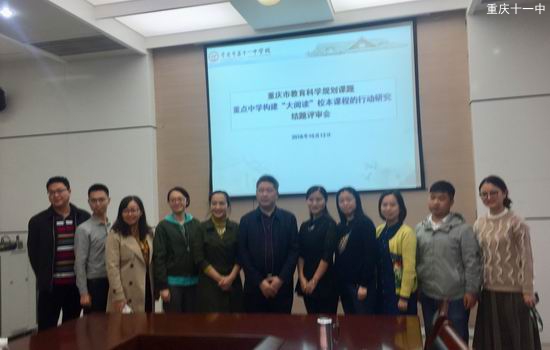 2018年10月12日,重庆市第十一中学校长钟进友承担的“重点中学构建‘大阅读’校本课程的行动研究”结题会在体艺馆负一楼圆桌会议室举行,根据课题评审专家集体评议,顺利结题。