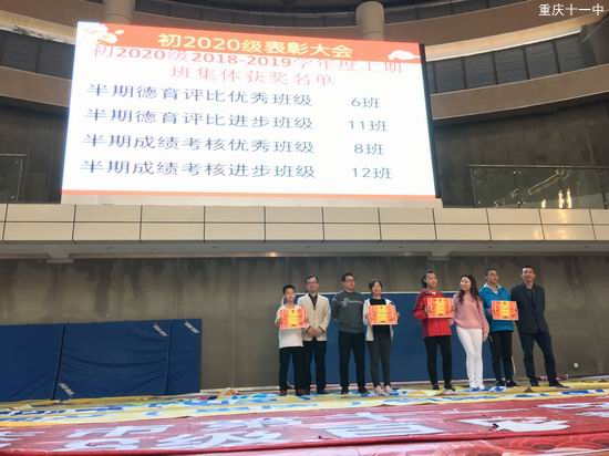 2018年11月2日,下午16时5分,在重庆第十一中学校的体育馆,初2020级的期中表彰大会开始了。本次表彰大会的关键词是“进步”,有进步学生、进步班级、寝室。