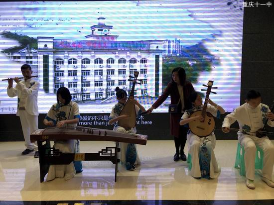 今天,来自美国的28位教育界人士抵达重庆,开始2018年“汉语桥——美国校长访华之旅”活动。我和几位民乐团成员在欧宾副校长的带领下也来到重庆南开中学礼堂,与其他学校的师生欢聚一堂,参加了接待活动。