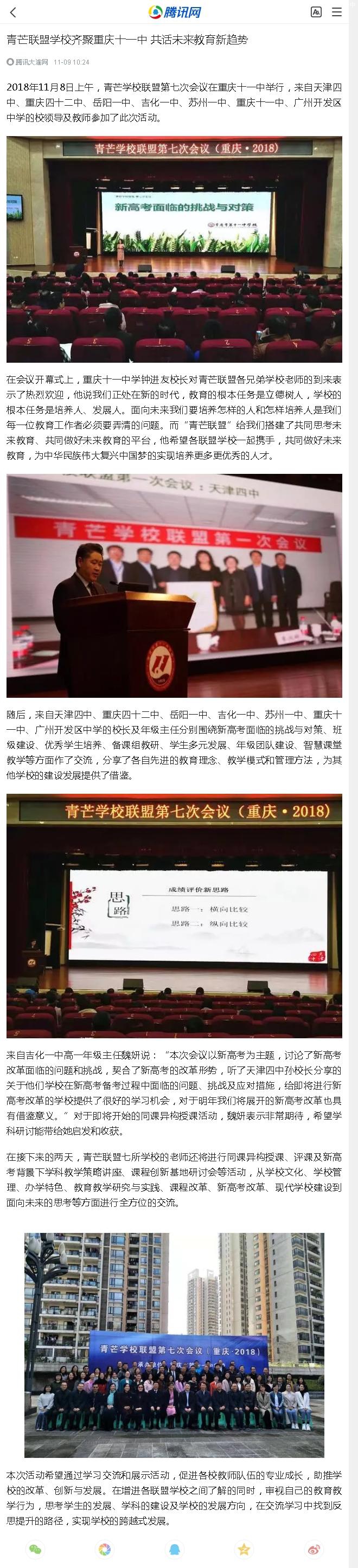 [腾讯大渝网]青芒联盟学校齐聚重庆十一中 共话未来教育新趋势
