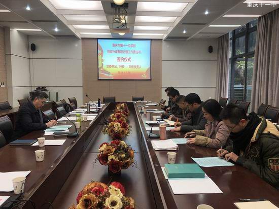 2018年12月26日下午,重庆市第十一中学校召开行政办公会,会上举行了有偿补课专项治理工作责任书签约仪式。学校党委书记、校长钟进友代表专项治理工作小组同各处室、年级负责人签订了责任书,并对行政干部提出了以身作则、带好队伍的要求,拉开了专项治理工作的序幕。
