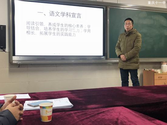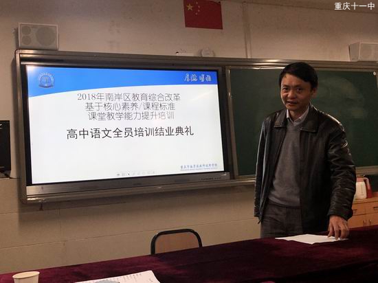 会上,我校高一语文备课组长梁龙全老师代表十一中发表了结业讲话。梁老师说,我校语文学科的宣言是:阅读引领,养成学生的核心素养;学导结合,培养学生的学习能力;学用相长,拓展学生的实践能力。之后,南坪中学、重庆第二外国语学校等中学分别分享了各自的新课标研究、学科素养、评课赛课等宝贵经验。