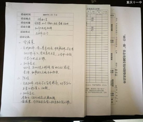 广大党员同志以党章为镜,对照自己在“两学一做”教育实践活动和平常的教育教学工作开展深刻反省,查摆问题,提出改进的措施。评议时同志们指出不足,共同提高。通过评议达到了” 照镜子,正衣冠,洗洗澡,出出汗”目的。通过评议找到了自己的差距,明确了改进的方向。达到了民主评议的目的。通过评议凝聚广大党员同志的共识,团结一致鼓干劲,为全面完成高三各项任务继续努力。