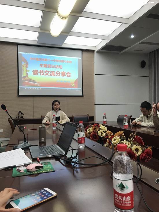 2019年3月21日,中共重庆市第十一中学校初中支部委员会党员大会在圆桌会议室召开3月党员大会。大会主要进行了两项议程:一是学习习近平总书记的两会精神;二是初中支部主题党日活动开展读书交流分享会。