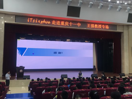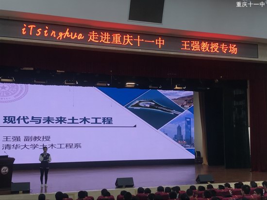 2019年5月11日,由清华大学招生办公室主办、重庆市第十一中学校承办的“走进重庆十一中——王强副教授专场:《现代与未来土木工程》讲座”在十一中文益堂举行。参加本次讲座的有来自清华大学的教授,初三、高一、高二年级卓越班的同学们。讲座由高一4班洪萱仪同学主持。