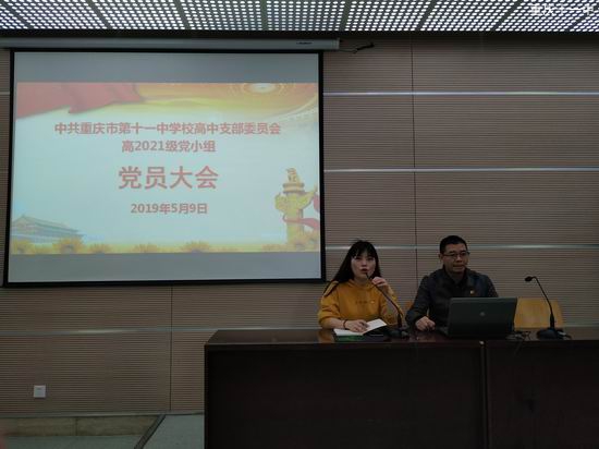 2019年5月9日,重庆市第十一中学校高2021级党小组在重庆市第十一中学校阶梯教室召开了党员大会,组织全体党员学习理论知识。