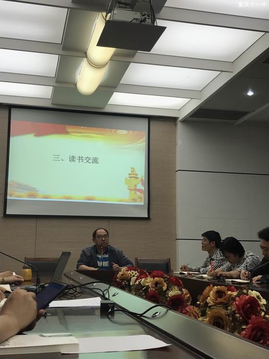 2019年5月23日下午4点55,中共重庆市第十一中学校初中支委党员大会在学校圆桌会议室召开,会议共分为三大流程,一是表彰党员读书先进个人,二是学习党的相关条例,三是聆听每个年级的党员教师深度交流自己的读书心得,会议由雷小利老师主持。