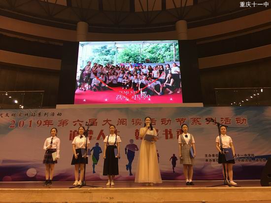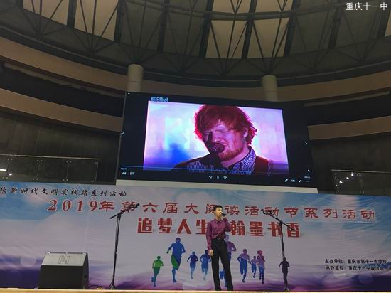 四位主持人的开场白刚落,精彩的节目便拉开了序幕。此次的英语“大阅读”活动可谓是别开生面。英语,让人联想到的第一个便是“外国文化”,但同学们并未仅仅局限于此——是的,同学们以英语为载体,演绎了一个个中国的传统故事。当然,如果这场“大阅读”的亮点还在后面——同学们上台演唱经典歌曲,温柔的曲调让人沉醉其中;激昂的歌声让同学们热血沸腾。英语“大阅读”的同学们紧跟潮流的步伐,《复仇者联盟》与《镇魂》的混剪着实将同学们的情绪带上了高潮。