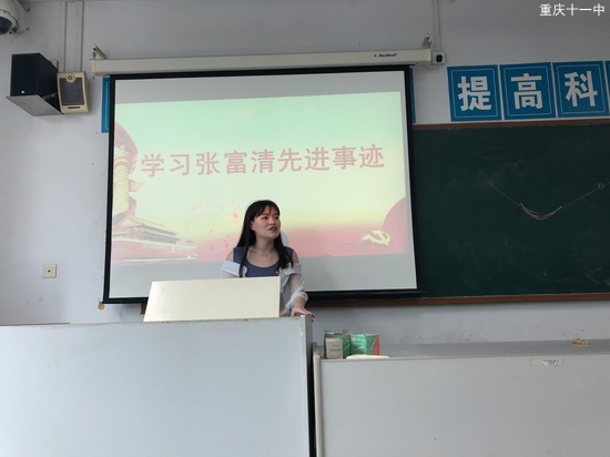 2019年7月5日,重庆市第十一中学校高2021级党小组在重庆市第十一中学校逸夫科技楼召开了党员大会,组织全体党员学习优秀党员张富清的光荣事迹。