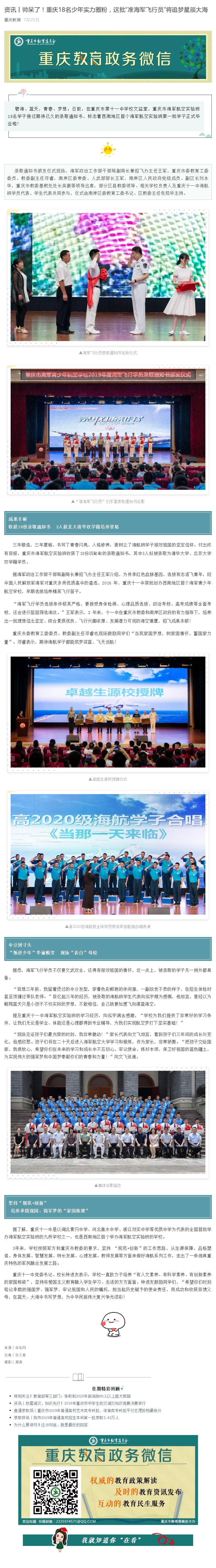 【重庆教育】资讯丨帅呆了!重庆18名少年实力圈粉,这批“准海军飞行员”将追梦星辰大海