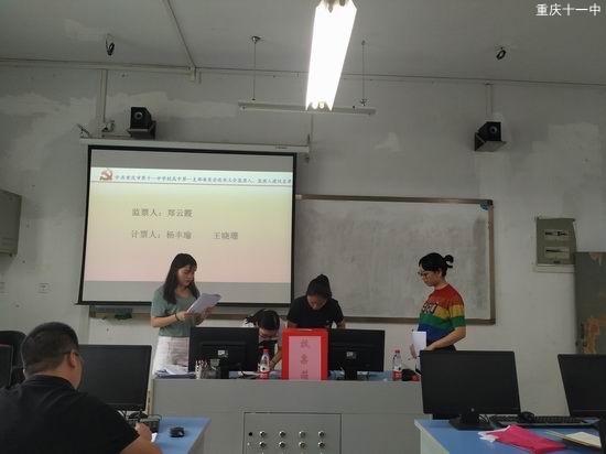 2019年8月29日,我校高中第一党支部委员会换届选举会议隆重举行。中共重庆市第十一中学校高中第一党支部委员会共有党员41名,参会并有选举和被选举权党员36名,符合党章规定。