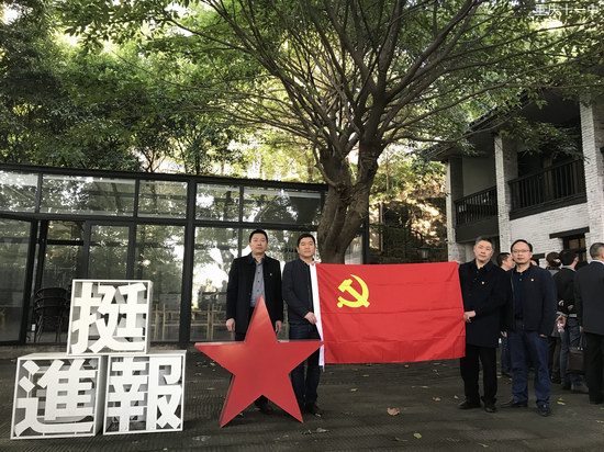 在《挺进报》旧址前,在鲜红的党旗下,全体班子成员高举右手、庄严宣誓,重温了入党誓词。随后,在讲解员的带领下,大家参观了历史陈列馆,观看并聆听了《挺进报》的历史和它的创办者之一陈然的故事,了解到那段艰苦奋斗的历史,真实地感受到中国共产党人坚定的理想信念和不畏牺牲的顽强意志。随后,大家来到了互动体验馆,看到了《挺进报》印刷的完整过程以及陈然和因《挺进报》牵连入狱烈士的遗物。