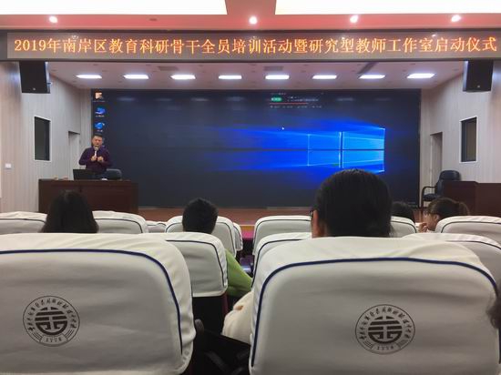 今天的培训活动,主要有两项议程。第一项议程是西南大学教育学部钟婉娟教授的专题讲座;第二项议程是南岸区研究型教师工作室启动仪式。