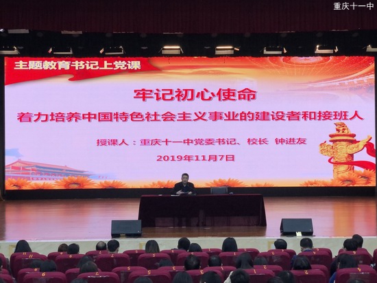 2019年11月7日下午5点,重庆十一中党委在文益堂召开全体党员大会。会议的主要议程是学校党委书记、校长钟进友上党课,党课的题目为《牢记初心使命,着力培养中国特色社会主义事业的建设者和接班人》。会议由学校党委委员谢晓斌主持,区委巡回指导组第五组组长丁长福出席了本次会议。