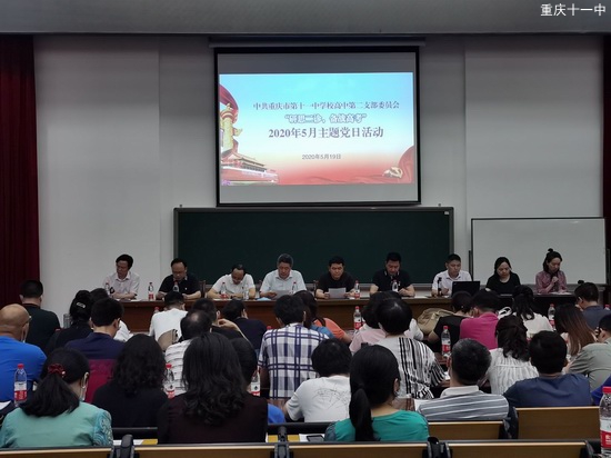 2020年5月19日晚上6:30高中第二党支部在CBD校区科技报告厅举行5月“研思二诊,备战高考”主题党日活动,活动由支部书记艾林同志主持,学校党委书记钟进友同志、党委副书记欧宾同志、党委委员谢晓斌同志、肖开模同志、工会主席杨喻虹同志以及学校三办五中心所有主任全部列席参加。