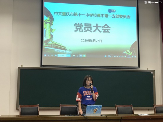 2020年8月27日下午,重庆市第十一中学校高中第一党支部在cbd校区科技报告厅召开党员大会。