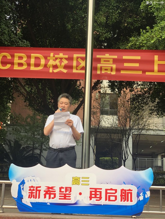 钟进友校长代表学校激励我们。钟校长站在漫漫人生长路的另一端回看高三,高三是品质的焠炼,任何有效的学习,到最后都一定是改造自我的过程。克服惰性,一心投入学习,这样的转变很艰难,但却是完成精神成长的重要一步。而高三就是见成这一步最好的契机!高三同时也是形成自我“如何学习”的方法的良机。生命,就是一个不断学习的过程。有了"法"才能不断地更新自我,才能在远航之路上,航行得更远。并且钟校长庄重承诺:学校一切都为高三保驾护航。