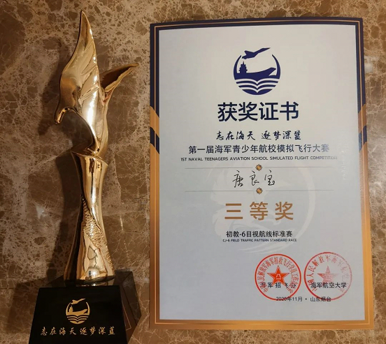 成功的背后是一次次艰辛的训练,一次次大胆的尝试,一次次挫折后的不屈不挠。矫鹰逐深蓝,大赛彰壮志,希望我校所有海航学子,借这次海军青少年航校模拟飞行大赛的契机,坚定逐梦深蓝、卫海报国的壮志,勤学苦练,潜心钻研,追求卓越,奋发图强,为护卫祖国海天的责任与梦想而拼搏奋斗!