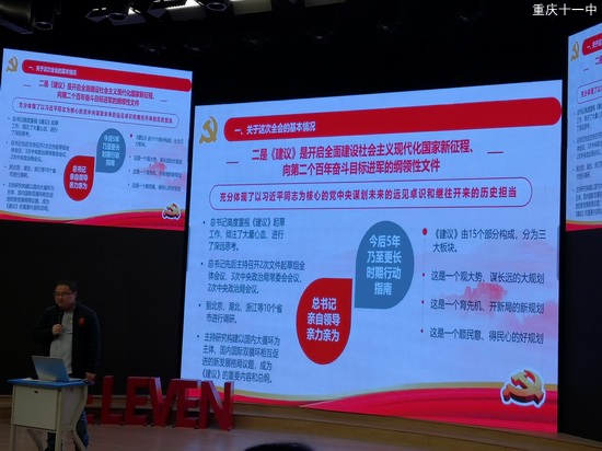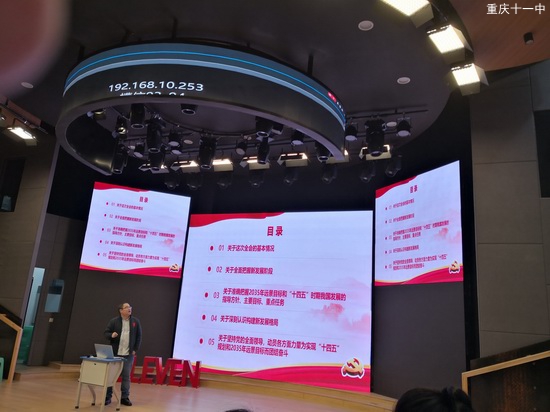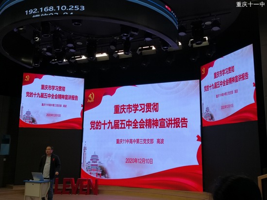 通过本次党课学习,与会同志对于重庆市学习贯彻党的十九届五中全会精神宣讲报告有了全面和深入的了解。对未来充满信心,我们一定将未来发展目标牢记于心,结合工作实际,把党中央的决策部署全面落实到日常教育教学常规工作当中。