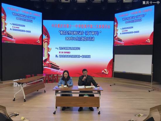 为纪念中国人民志愿军抗美援朝出国作战70周年,深入贯彻落实关于抗美援朝的重要讲话精神,加强对教师队伍的新时代爱国主义教育,重庆市第十一中学校高中第二党支部委员会组织年级全体教师于识益演播厅观看大型电视纪录片《为了和平》。