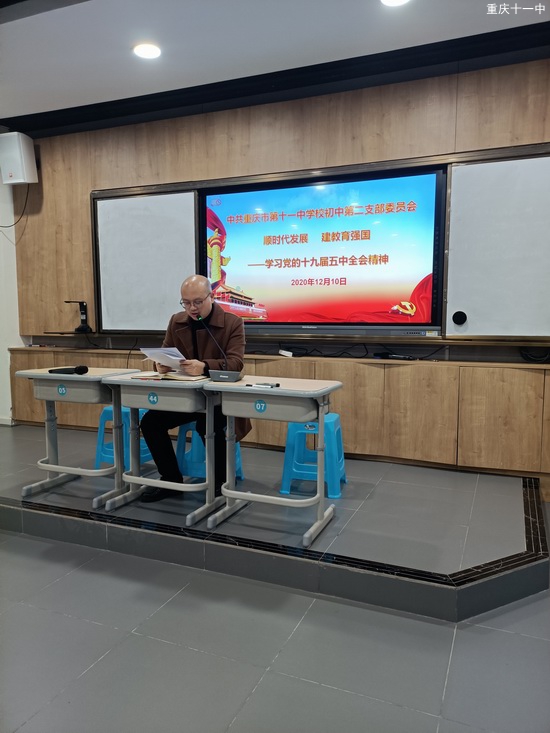 20201210日,中共重庆市第十一中学校初中第二支部委员会全体党员在文德校区阶梯教室召开了党员会议,本次党员会议分为以下五项议程。