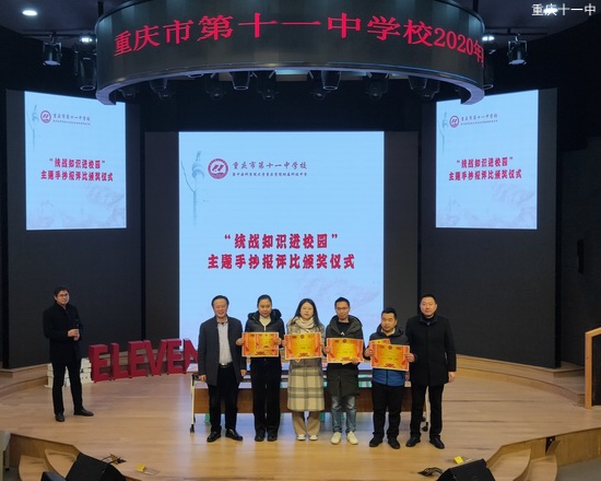 重庆十一中班主任培训会上举行了隆重的“统战知识进校园”主题手抄报颁奖仪式和“共青团宣传阵地”主题活动颁奖仪式,肖开模副校长、艾林主任为获奖班级颁发奖状