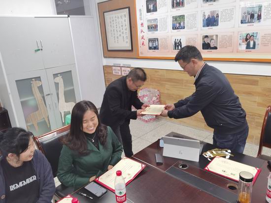 会议第四项,由年级主任童国福做本期年级全局工作重点介绍。童主任首先欢迎各位家长对年级工作建言献策,多维参与;然后谈到在本期时间紧任务重的背景下,如何利用好平时时间和周末时间,高效学习,夯实基础;最后谈到为了塑造学生整齐统一的外在形象、增强学生集体团队意识、养成简朴阳光的生活作风,级服的进一步推进。会议最后,由童主任为各位家委会代表颁发聘书。