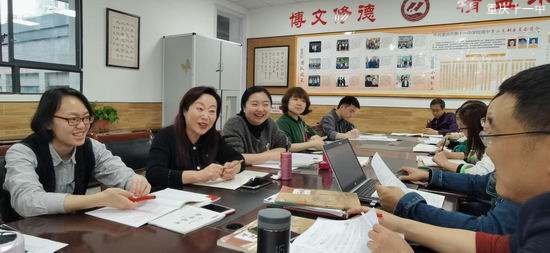 授课完毕,全体教师移步年级办公室,集中评课磨课。
