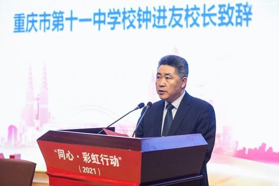 重庆市第十一中学校校长钟进友讲到,“同心·彩虹行动”西部教师公益培训项目落户十一中,极大地激励了全体十一中人不忘教育初心、继续砥砺前行的奋斗热情。学校将不负领导厚望,让“同心·彩虹”这道七彩之光照亮更美好的教育未来。