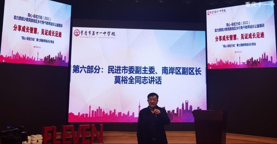 分享会最后,民进市委副主委、南岸区副区长莫裕全同志作重要讲话。讲话中说到,教育是最大的民生工程,教育是国家的需要,加强基础教育、核心技术的研究势在必行。大家应不负众望,当一名好老师。要有一颗热爱教育的心,充分加强对党史理论的学习,不断提升党性觉悟,拥有渊博的知识、高超的教学技能,能用多种方法将自己的知识转化为学生的能力,关注社会、关注未来、跳出教育看教育,在教育中提升学生的综合能力,让学生终生受益。