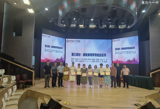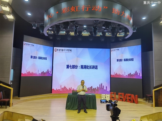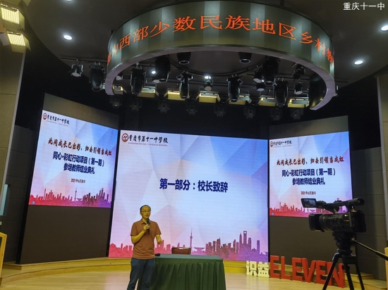 2021628日下午,“同心·彩虹行动”助力西部少数民族地区乡村骨干教师成长公益培训第一期参培教师结业典礼在重庆市第十一中学校识益演播厅举行。民进重庆市委会参政议政处处长陈涛,我校副校长李顺林、教师发展中心主任许刚强、教师发展中心副主任兼高2023级年级主任童国福、教师发展中心副主任兼民进十一中支部副主委明正华、教师发展中心副主任高勇参加本次会议。此外,国科大重庆学院附属科技中学科技副校长焦仲民、科技中心吕主任、张航老师也参与到本次分享活动中来。高一年级王丹老师担任本次活动的主持人。