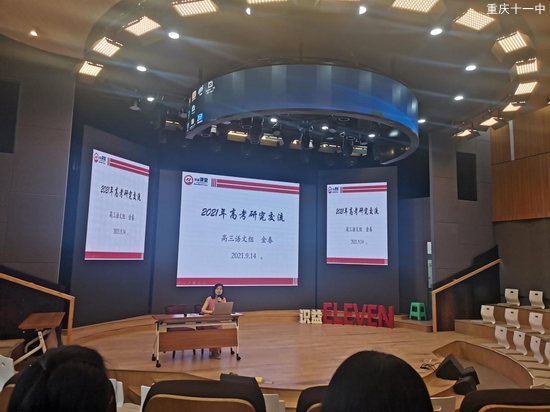 9月14日早上8时,重庆十一中高中语文组全体教师在识益演播厅举行集体教研活动,会议由语文教研组长张俊老师主持。教研活动共分为四个部分:新教师介绍;新教材“三位一体”备课模式的介绍;新学期重点工作的布置;高三语文备课组长金春老师高考阅卷工作的交流。