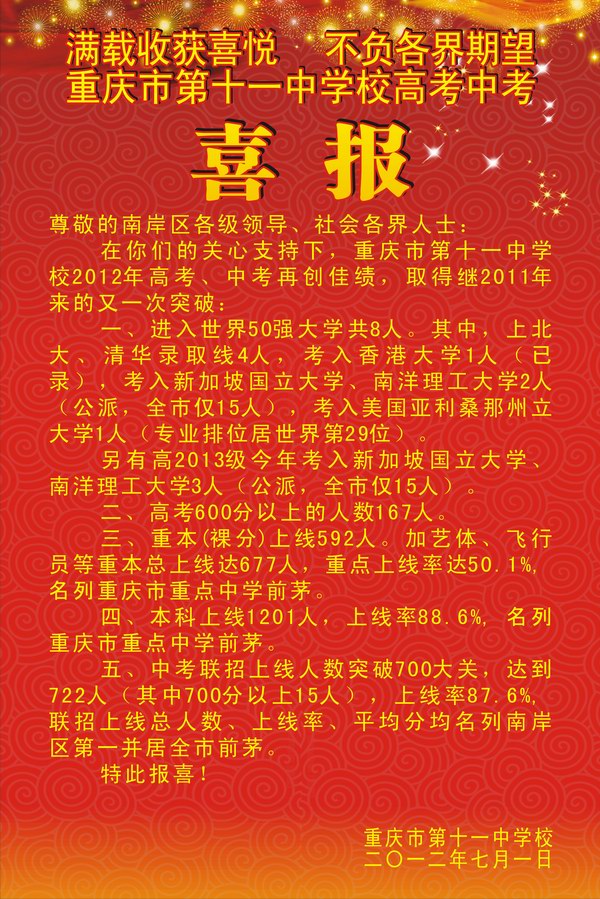 2012年高考中考喜报