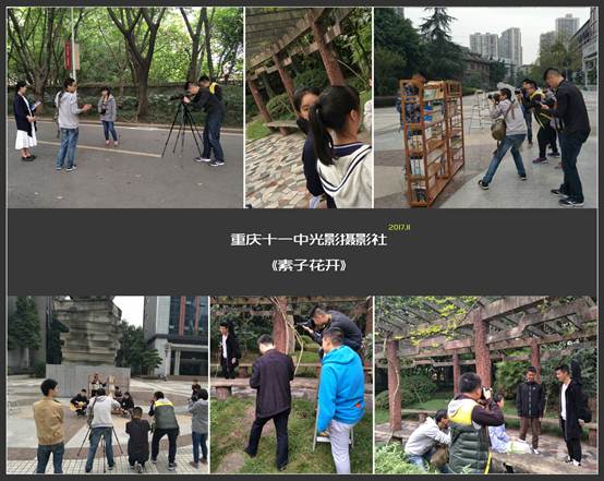 十一中光影摄影社成立于2015年10月,由一批热爱摄影的初、高中学生组成,目前共有成员一百多名。摄影社的宗旨是提高社员摄影水平、丰富学生课余生活、服务学校大型活动。摄影社除了承担起学校运动会、大阅读、体育艺术节等大型活动的拍摄任务外,还会不定期邀请专业摄影师开展摄影专题讲座,也会举行丰富多彩的摄影实践活动和作品交流活动。