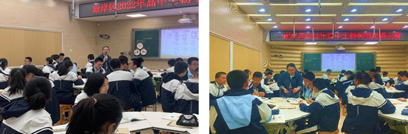 同课异构显智慧,杏坛竞技展风采。2022年4月12日(星期二)7:55~16:45,南岸区2022年高中生物学优质课决赛在重庆市第十一中学校如期举行。本次活动特别邀请到重庆市第十一中学校副校长、正高级教师李顺林副校长,教师发展中心主任、生物学课程基地负责人许刚强校长助理,生物学课程基地负责人、南岸区名师工作室主持人、南岸区中学专委会常务副理事长、正高级教师敖永权老师,南岸区教师进修学院中学生物教研员文文乙豪老师,重庆市第二外国语学校教师、中心组成员代丽老师,重庆市广益中学生物教研组长魏冬梅老师担任评委。还得到重庆市第十一中学校教师发展中心刘志荣副主任、后勤服务中心谢红卫主任和陈志友副主任的莅临指导。