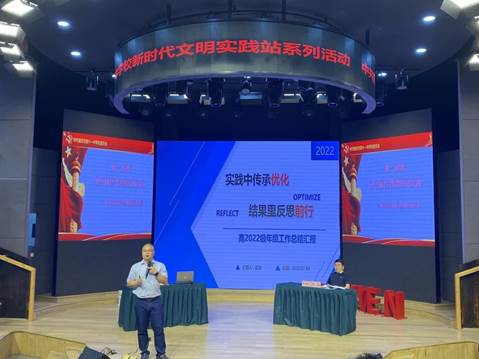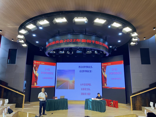 2022年7月10日下午15:00,重庆十一中干部交流培训会在识益演播厅举行,校领导出席。高中第三党支部高波书记进行2021-2022学年度下期年级工作总结汇报,汇报的主题为“实践中传承优化,结果里反思前行”。