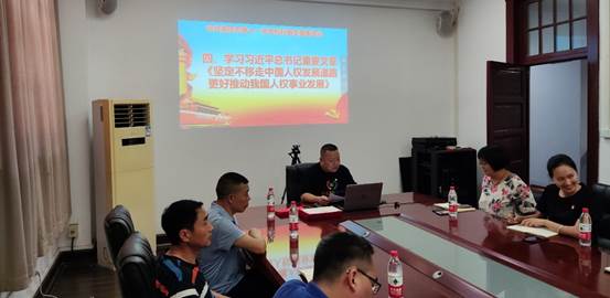 接着,谭远松同志带领在场党员同志一起学习习近平总书记重要文章——《坚定不移走中国人权发展道路、更好推动我国人权事业发展》。谭远松同志强调:呵护人的生命、价值、尊严,实现人人享有人权,是人类社会的共同追求。尊重和保障人权是中国共产党人的不懈追求。党的百年奋斗史,贯穿着党团结带领人民为争取人权、尊重人权、保障人权、发展人权而进行的不懈努力。党的十八大以来,我们坚持把尊重和保障人权作为治国理政的一项重要工作,推动我国人权事业取得历史性成就。