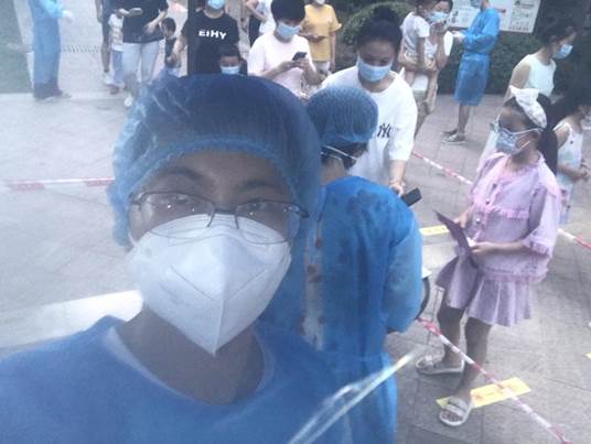 8月10日,面对新的疫情形势,并得知防疫一线人员不足的情况后,高中第二党支部在童国福书记的召唤下,迅速抗疫招募志愿者。支部的党员教师们积极响应号召,踊跃报名。最终,经支部统筹协调,高中第二党支部的教师志愿者被安排到南岸区长生桥镇核酸检测志愿者队伍。为奋力打赢这场与病毒较量的拉锯战、持久战,志愿者队伍用实际行动贡献了自己的一份力。