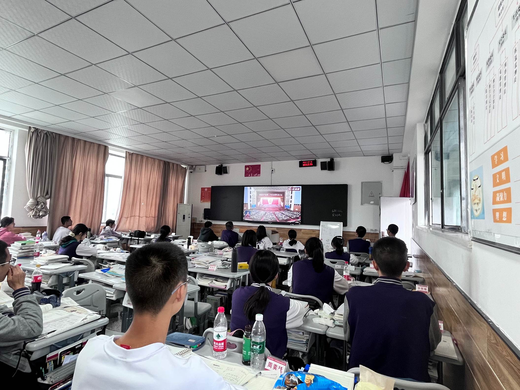 喜迎中国共产党20大顺利召开,我校组织周末在校学生收看20大新闻和大会召开直播。