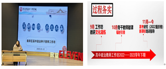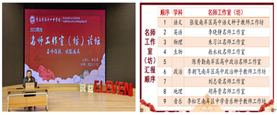 重庆市第十一中学校名师工作室(坊)期末论坛如期在元月12日晚6:30顺利进行。本次论坛以“名师领航,赋能成长”为主题,各名师工作室(坊)派代表发言交流,深入研讨与总结。